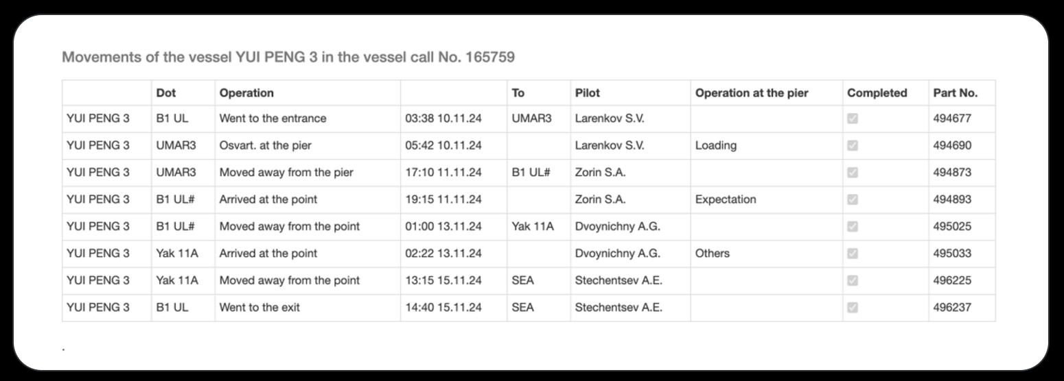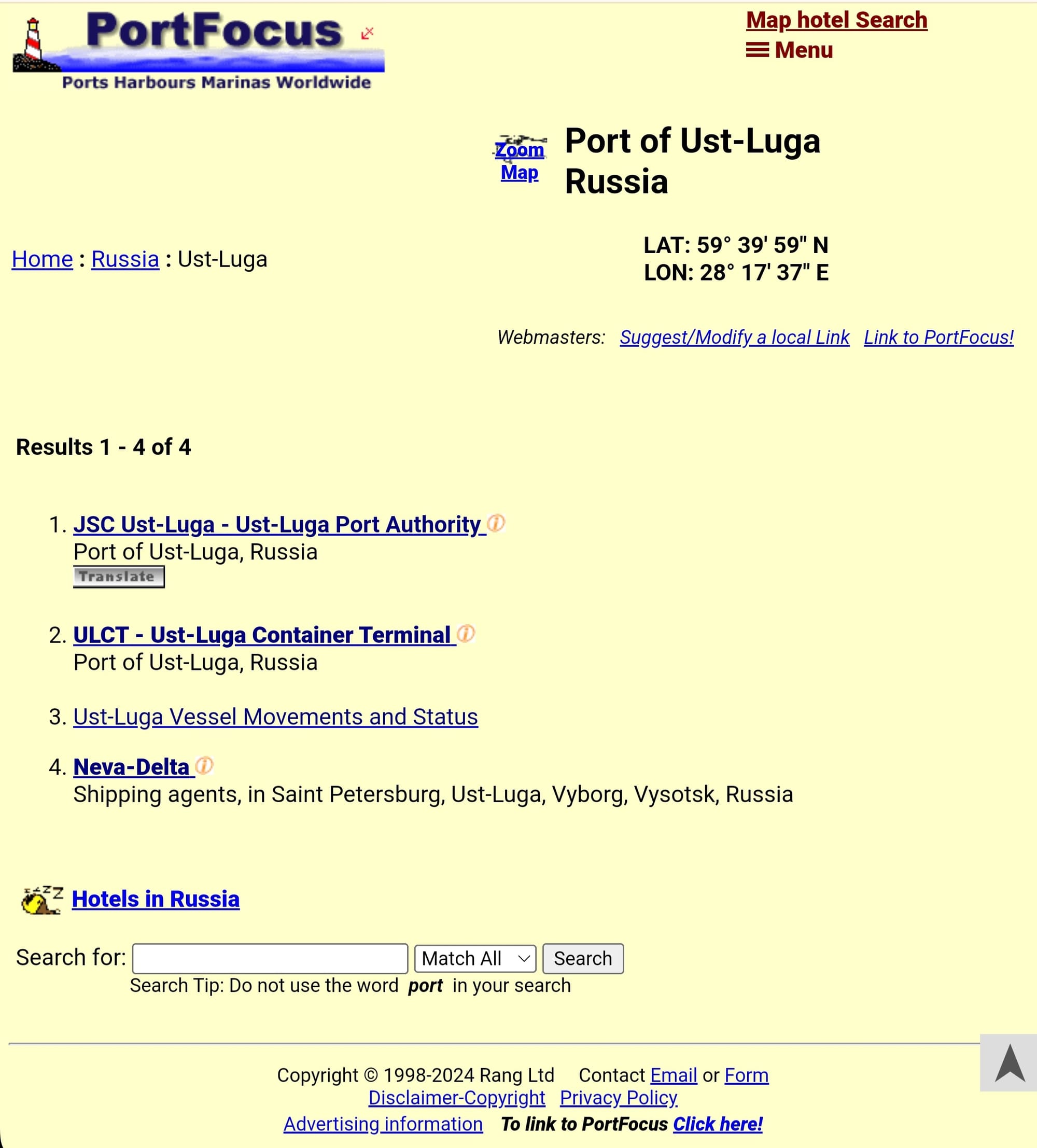 I tried searching for a few word and phrases from the table: “Movements of the vessel”, “call No. 165759" but didn't find anything (Well, anything relevant. Google is happy to provide a lots of useless results by ignoring parts of the query 🙄). I then considered that the logs are probably from a specific port instead of a generic maritime-tracking website, and wondered where that ship was coming from. Again, most historical ship data is behind paywalls, but luckily its last trip was recent enough for MarineOptima to tell me (for free) that it had come from the Russian port Ust-Luga: