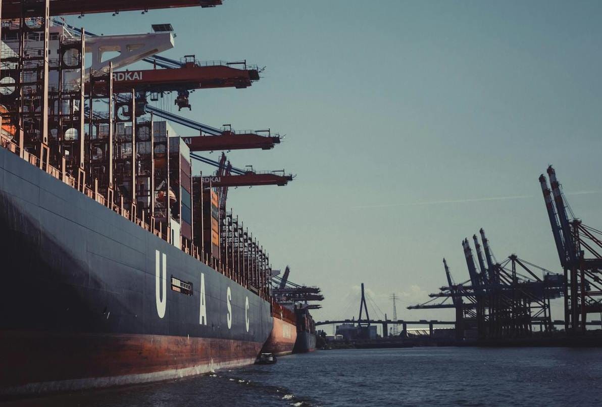 The photo looks a bit old, maybe taken with an analog camera. The vessel is obviously a UASC container ship, the cranes have “-RDKAI” written on them, and that bridge in the far background looks distinctive.
